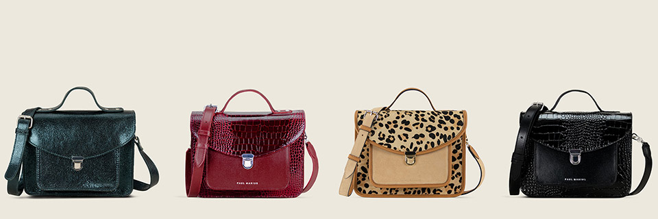 Our leathers catch the light: metallics, patent finishes, deep greens, warm burgundies...
