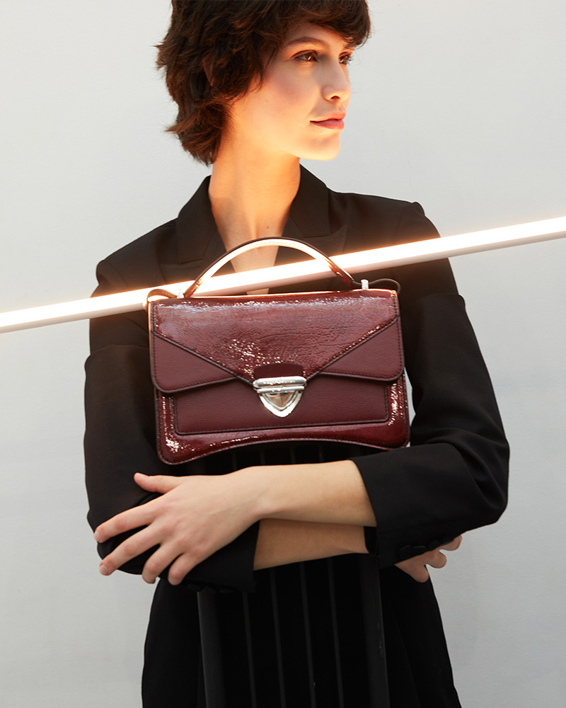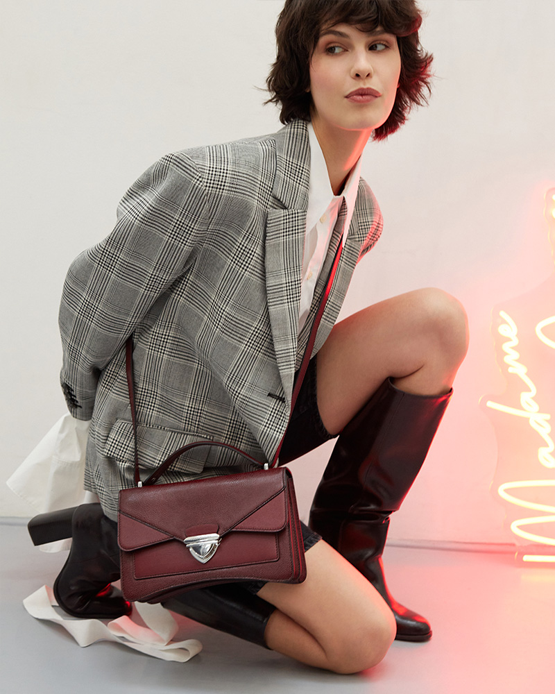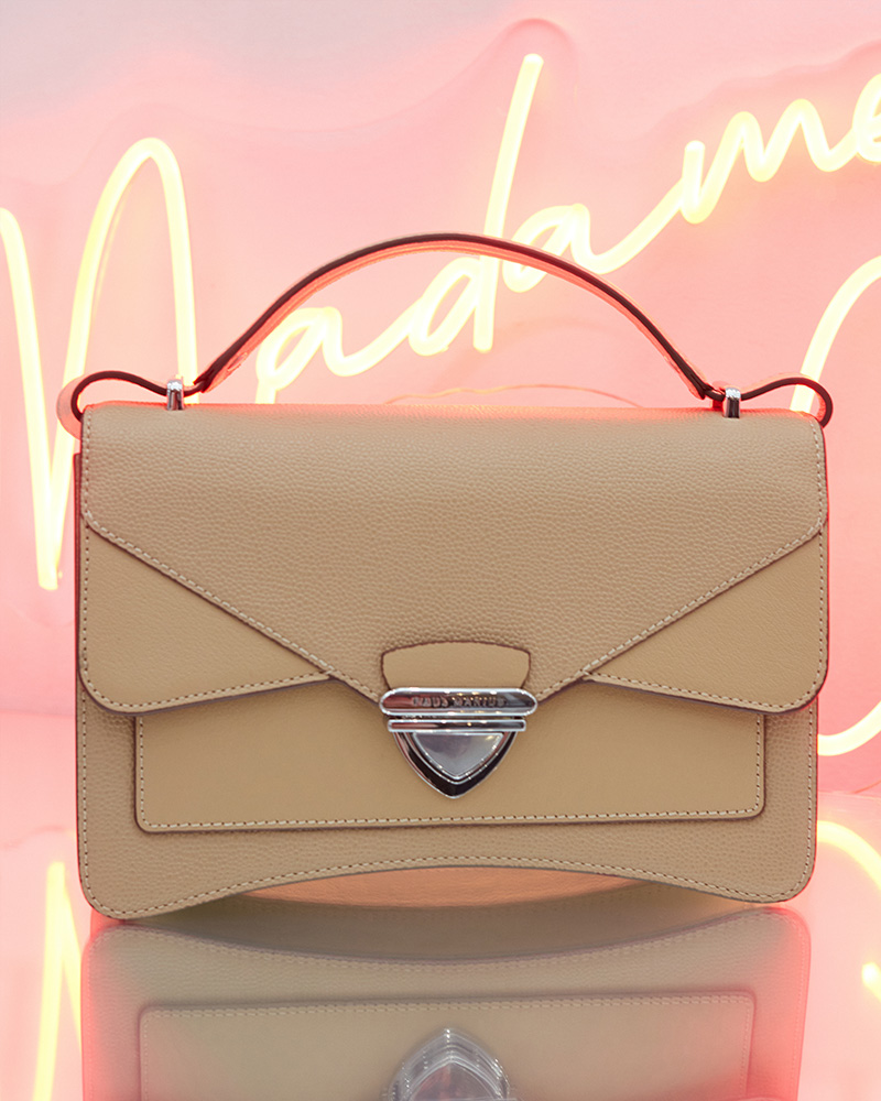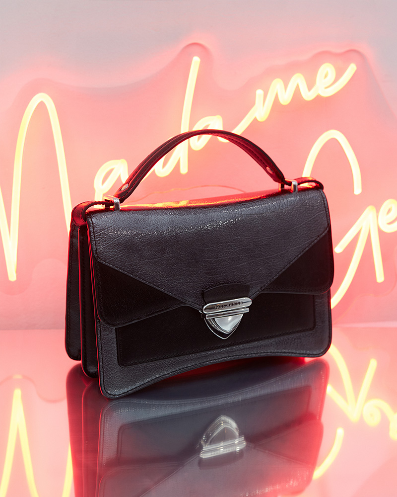 Madame George is the natural evolution of our iconic Mademoiselle George: a cult design revisited with boldness and character. With its graphic lines, assertive silhouette, and architectural construction, Madame George makes a statement. More than a bag, it is a manifesto — for the woman who is confident, free, and grounded in the present.